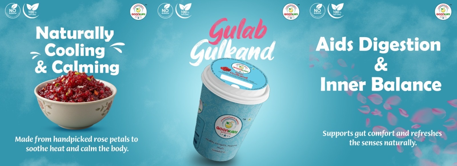 Goonkari is a celebration of India’s age-old taste and timeless warmth. We bring you the creamy delight of lassi and Doha rabdi, the cooling calm of chaas and shikanji, and the natural sweetness of gulkand and fresh fruit salad — all crafted with love, just like home. Every product is a blend of purity, tradition, and soul — created to refresh your body and comfort your heart.
